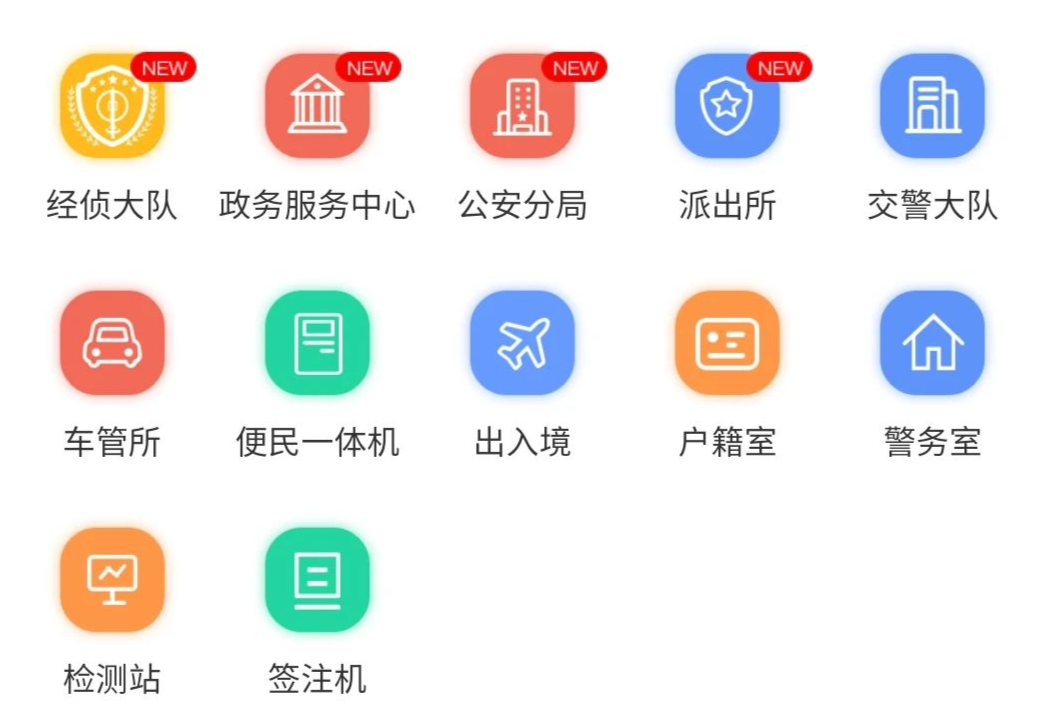 可以查询到您身边的经侦大队、政务服务中心、公安分局交警大队、车管所警务自助服务一体机、出入境大厅派出所、户籍室、警务室签注自助机。