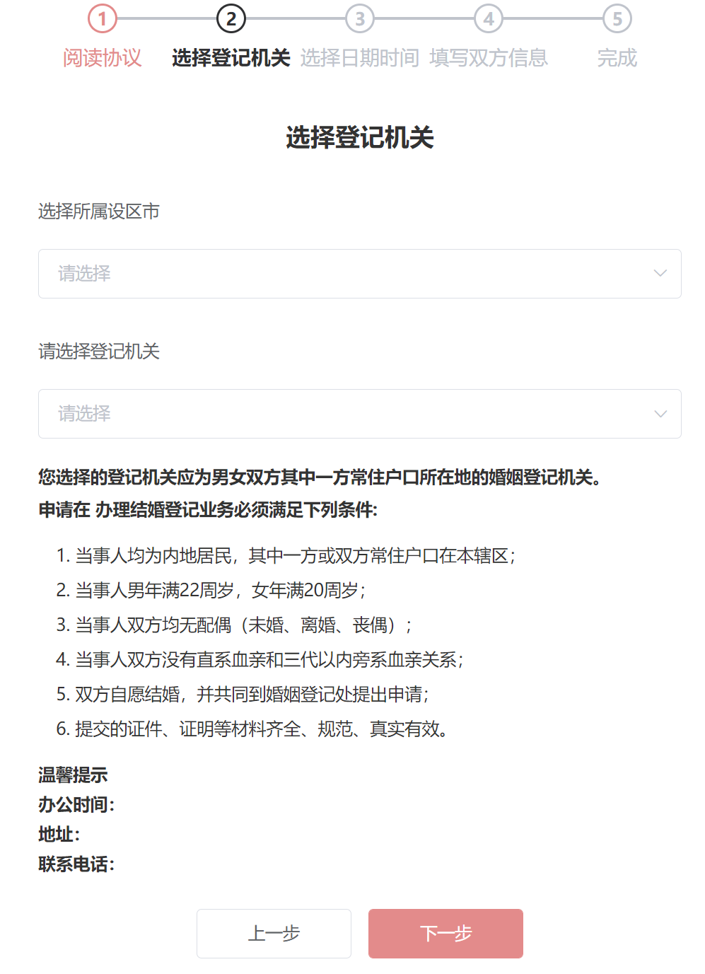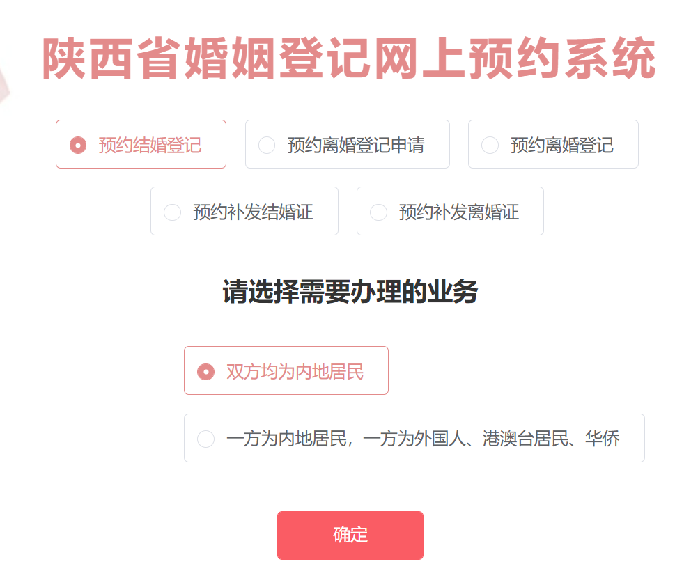 第一步:进入官网后选择根据个人情况选择“预约结婚登记”;