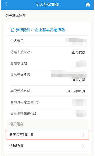 第五步:返回上一页面点击“养老金支付明细”,即可查询调待后1-7月补发的养老金金额。