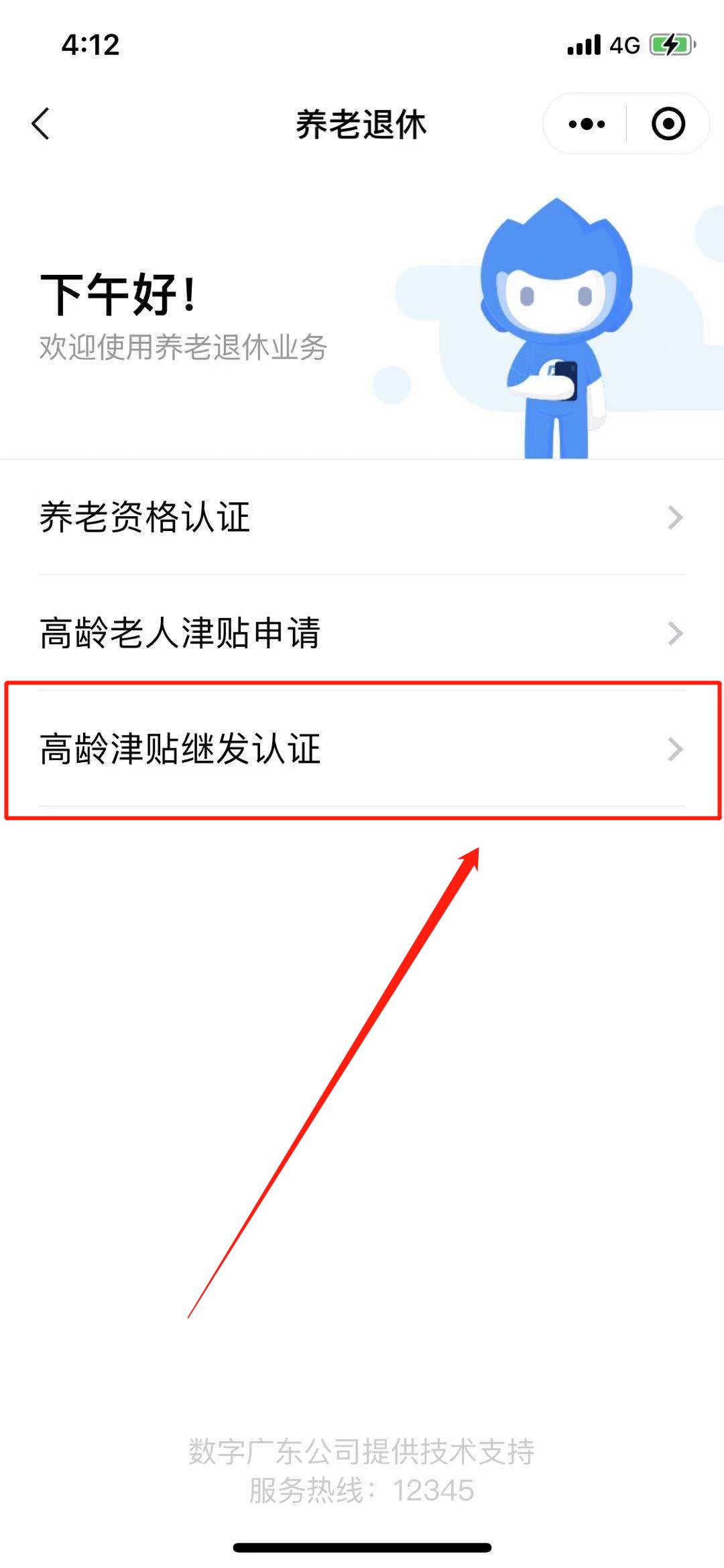 第二步:进入后根据情况选择,首次申请选择“高龄津贴继发认证”。