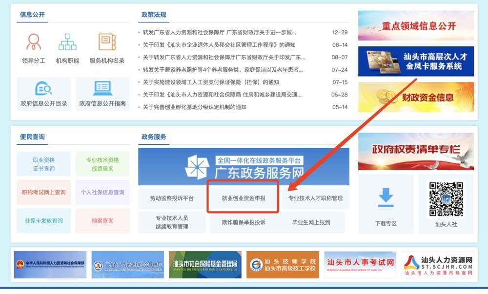 登陆“广东省就业创业专项资金补贴申报平台”,也可从汕头市人力资源和社会保障局官方网站(http://www.shantou.gov.cn/hrss)→就业创业资金申报登陆。个人用户注册,注册后登录系统。申报对象应自行妥善保管好账号、密码。如实、完整填写补贴申报信息并提交申请。