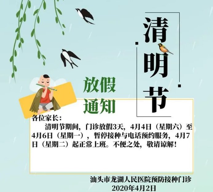 汕头市龙湖医院清明放假通知(汕头龙湖医院上班时间表)