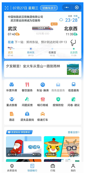铁路畅行码将旅客所乘列车的相关信息以及12306中最常用的功能集合在一起。