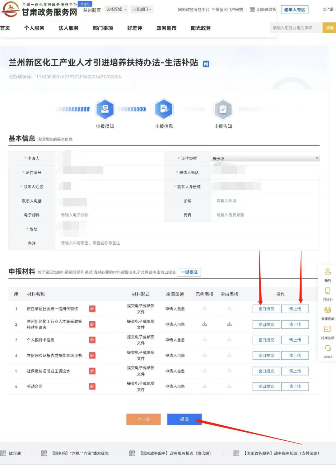 (注:“窗口提交”为线下申报选项,“请上传”为线上申报选项。)
