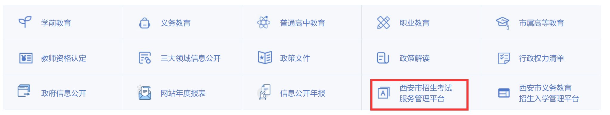 1、进入【西安市教育局】下滑找到【西安市招生考试服务管理平台】;