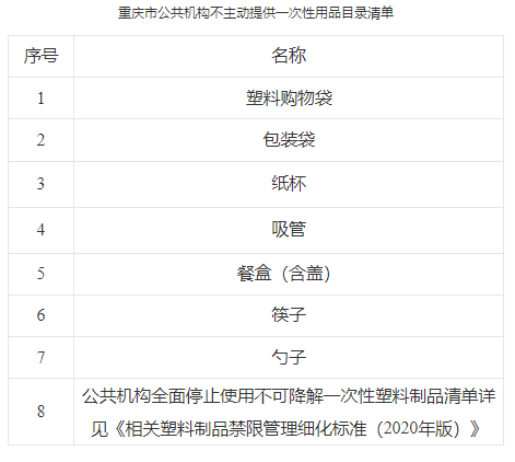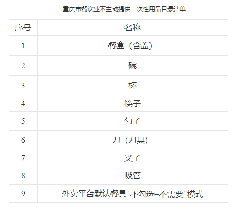 1.重庆市餐饮业不主动提供一次性用品目录清单