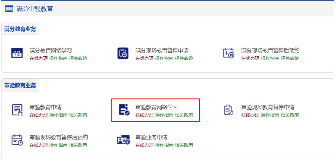 审验网络学习形式包括 视频课件、文档课件、审验测试。学习过程中必须打开摄像头,系统不定时抓拍学习照片, 有异常情形的系统记录嫌疑。审验网络教育每天不少于1小时,连续3天内累计学满3小时,通过审核后,视为完成学习。完成学习后即可办理 审验业务申请。