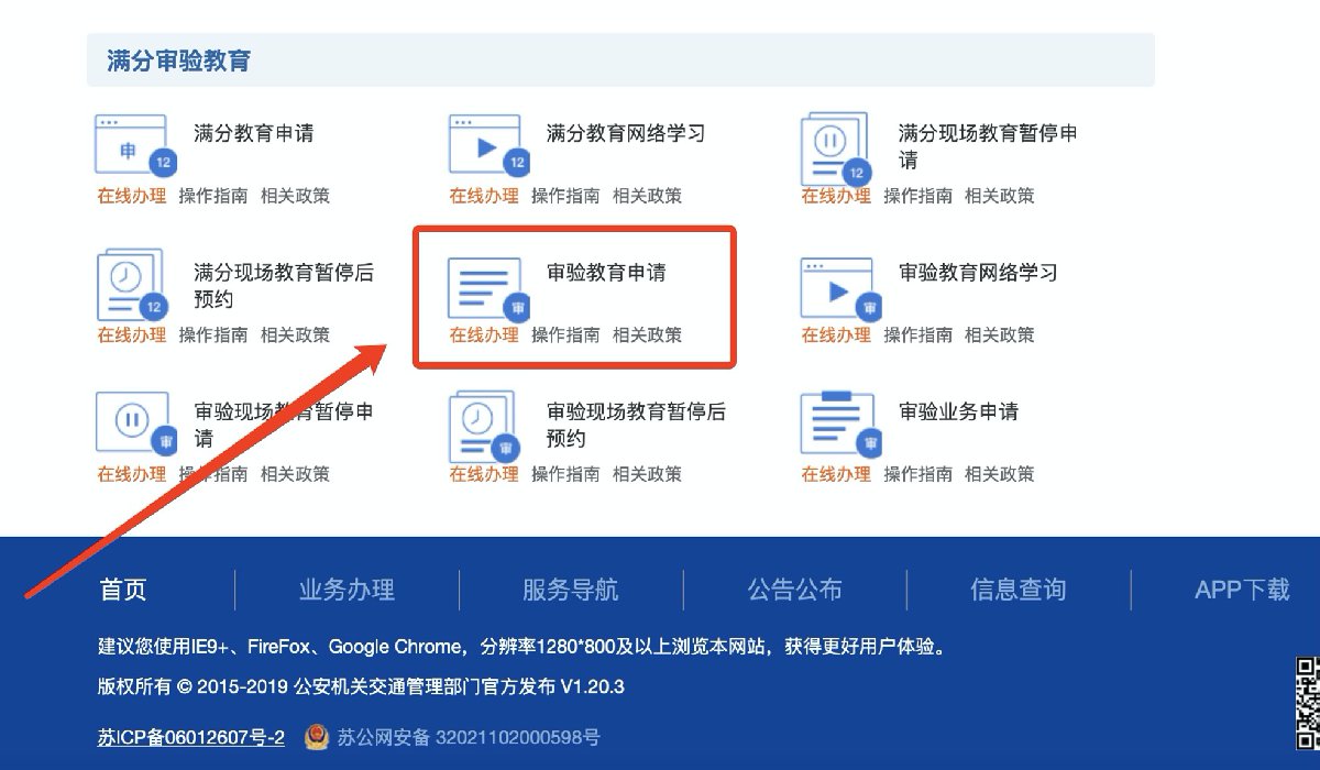 用户登录后,点击菜单【满分审验教育】,进入满分审验业务功能区,操作界面如下图所示: