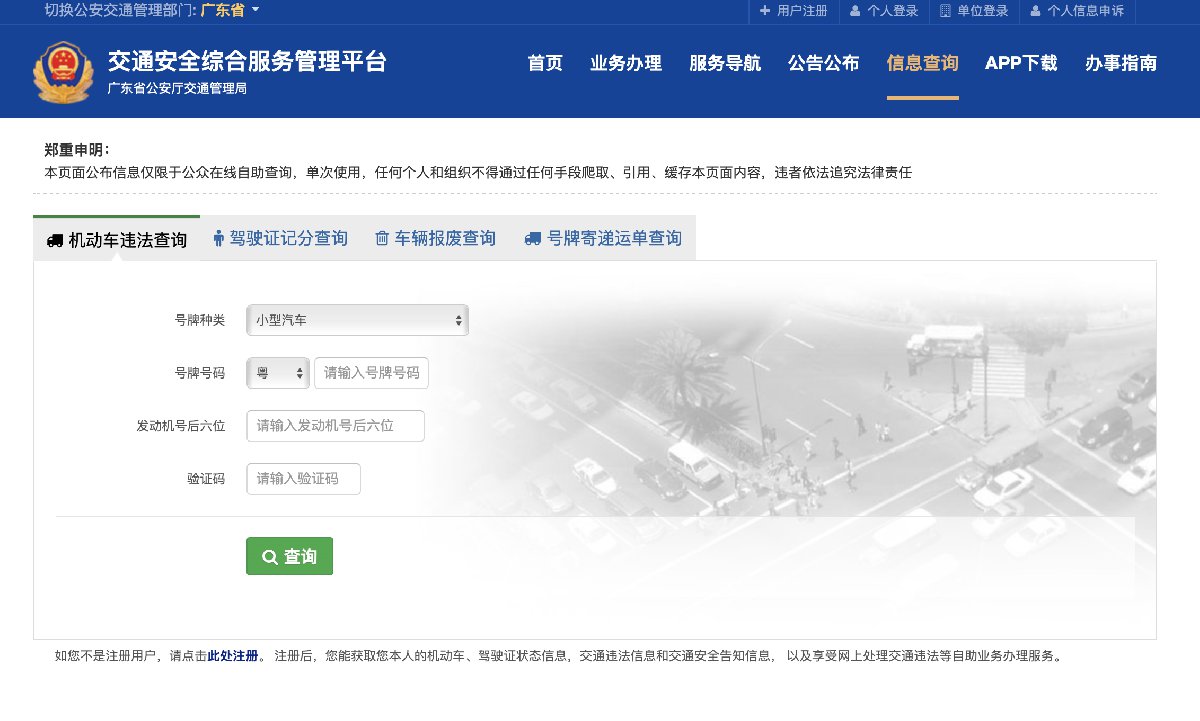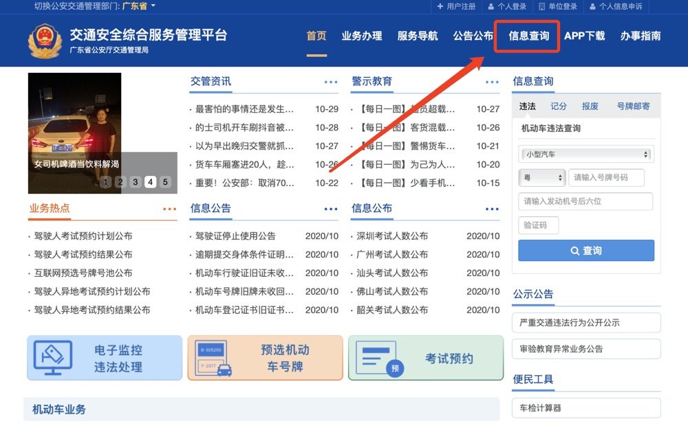 进入交通安全综合服务管理平台,然后点击“信息查询”,进入查询页面。