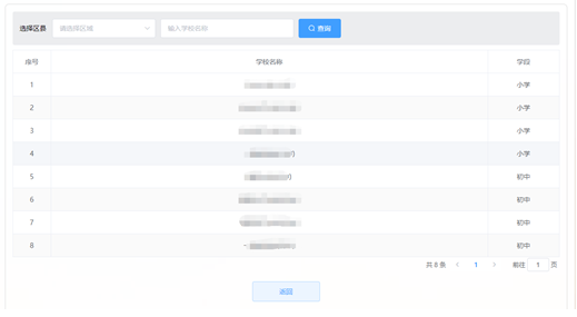 点击录取结果显示民办学校列表,可通过区域/学校名称进行查询。