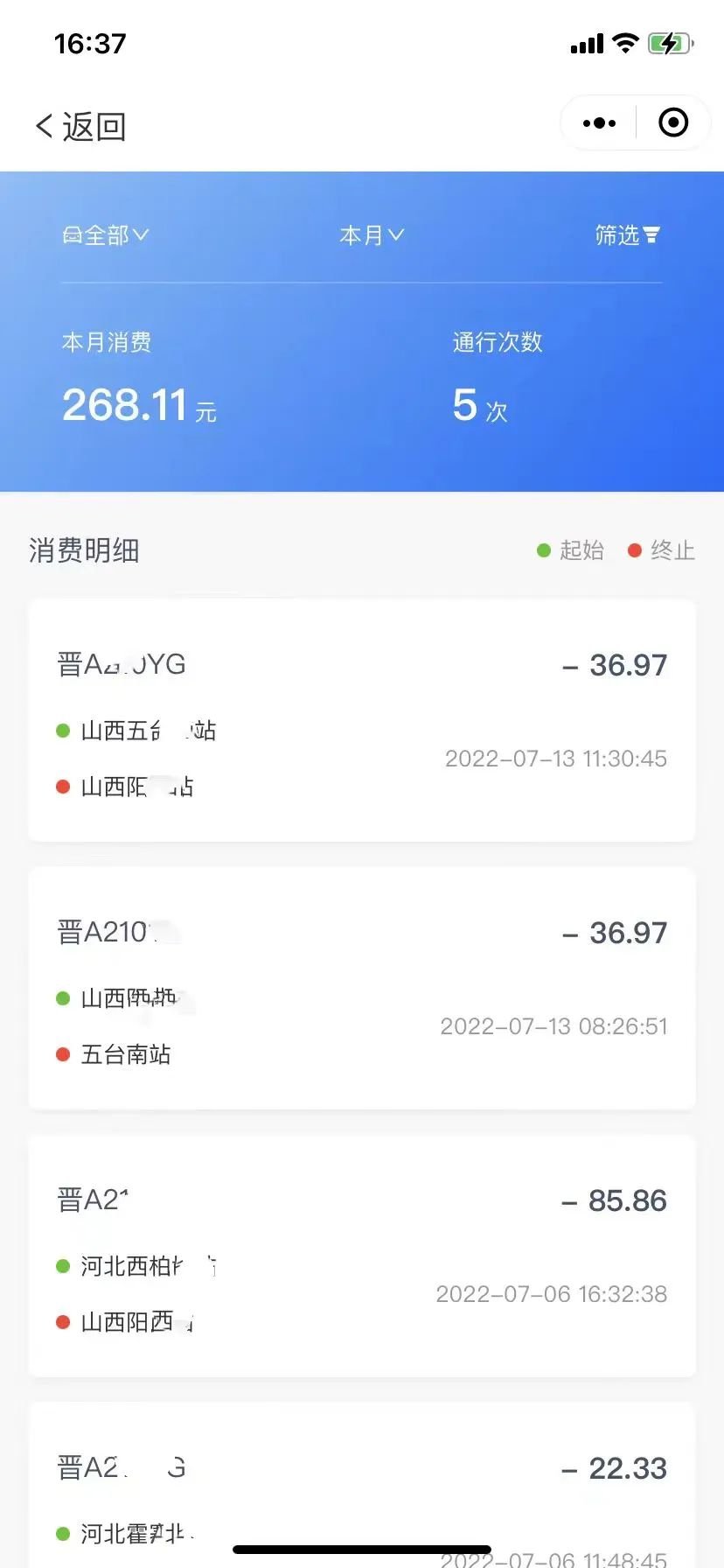 山西不停车收费服务平台微信小程序操作手册