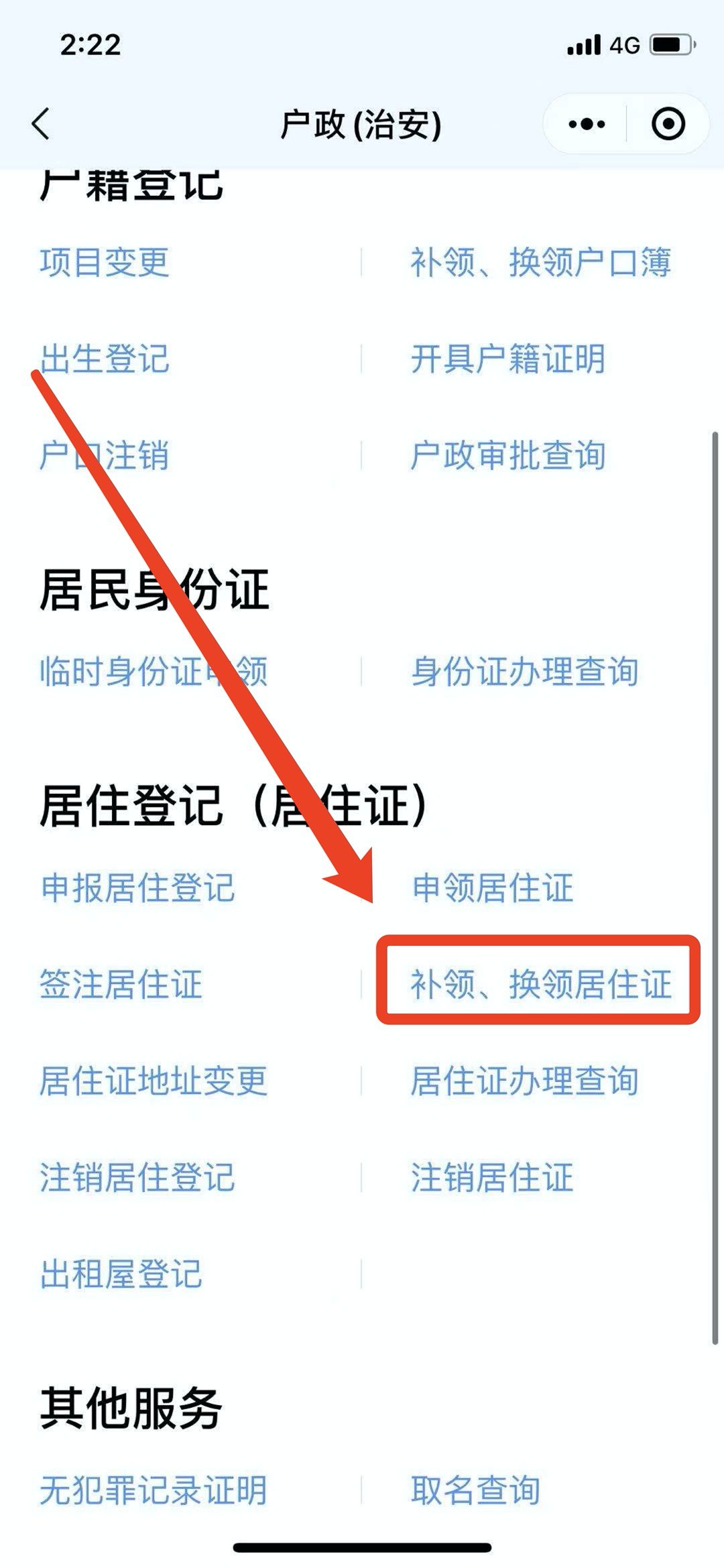 第二步:在居住登记(居住证)一栏选择居住证办理查询。