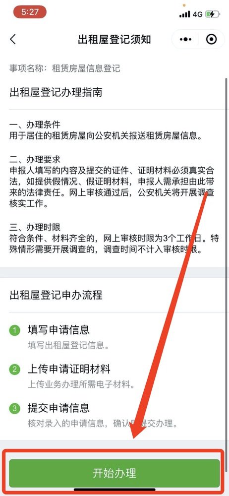 第三步:仔细阅读办理须知,确认是否准备好材料,点击下方绿色按钮“开始办理”。
