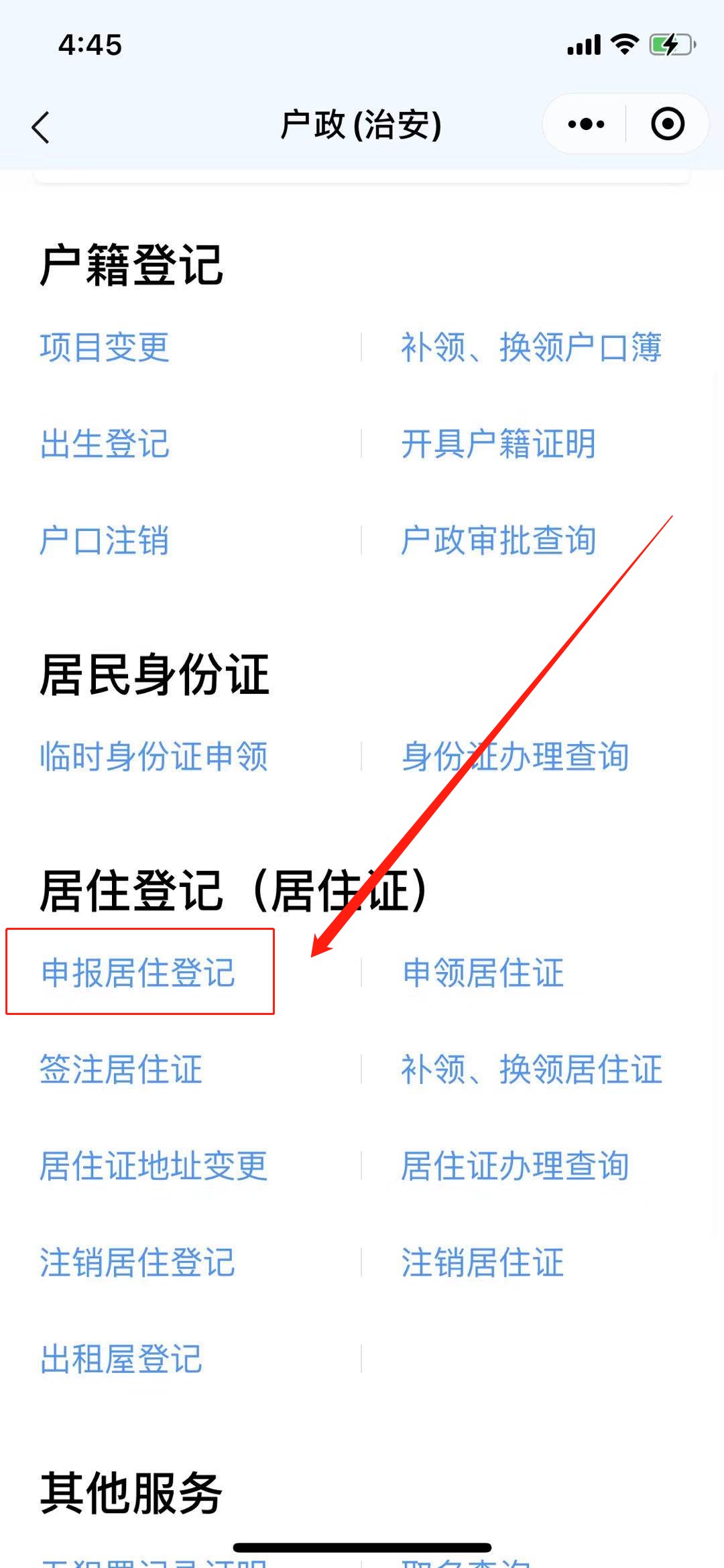 第二步:进入页面后找到“申报居住登记”点击进入。