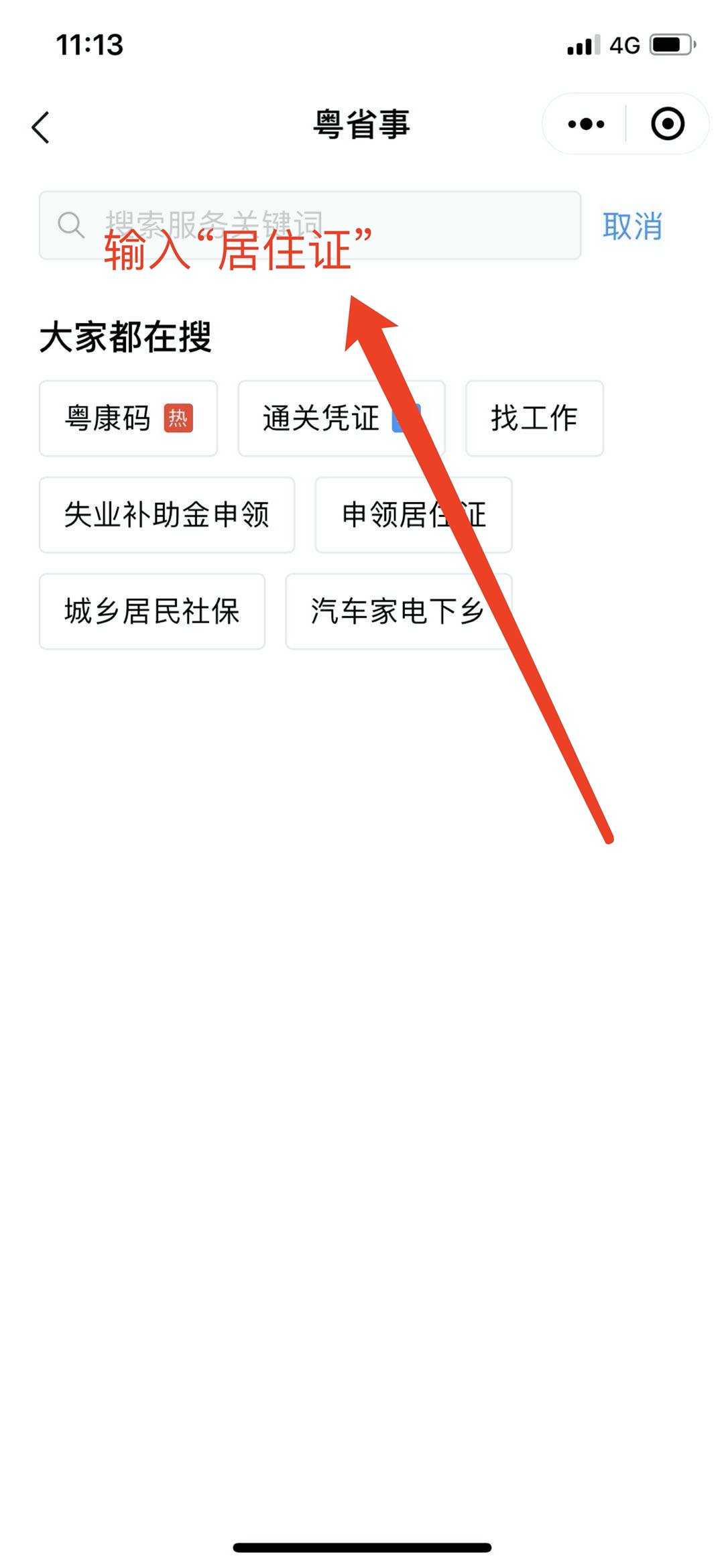 2.找到右上角的搜索栏,点击在搜索框中输入居住证。