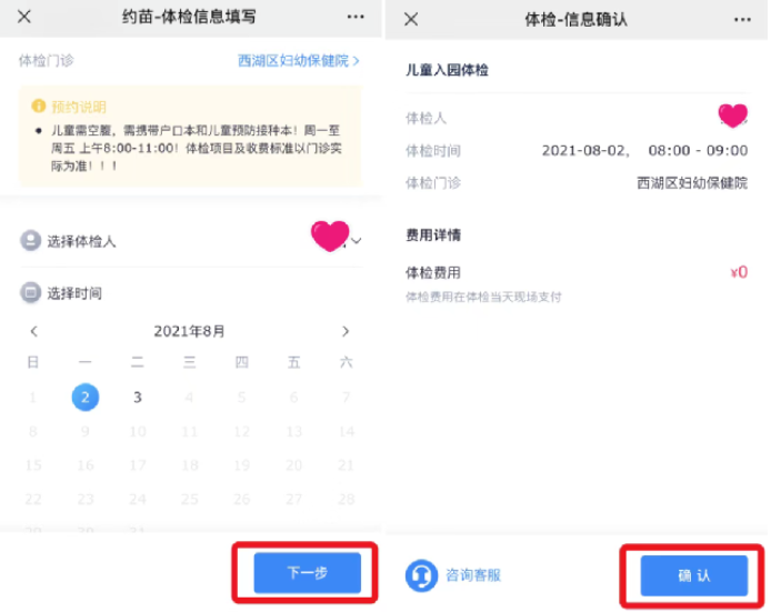 2022年秋季南昌西湖区儿童入园入托体检网上预约指南