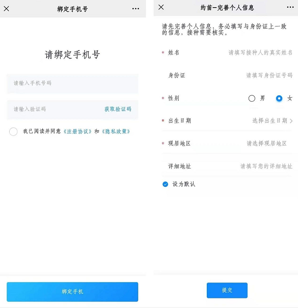 3、绑定手机号,完善儿童体检个人信息;
