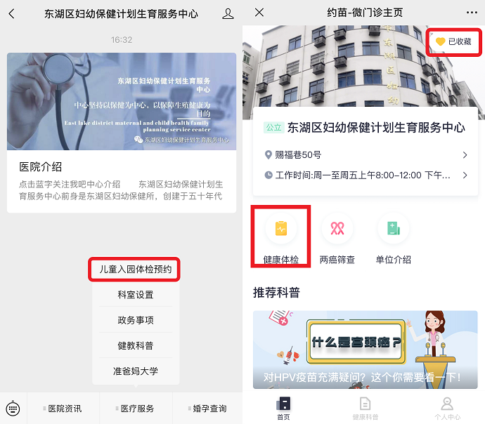 ➤2022年秋季南昌市东湖区妇幼保健计划生育服务中心儿童入园体检预约指南: