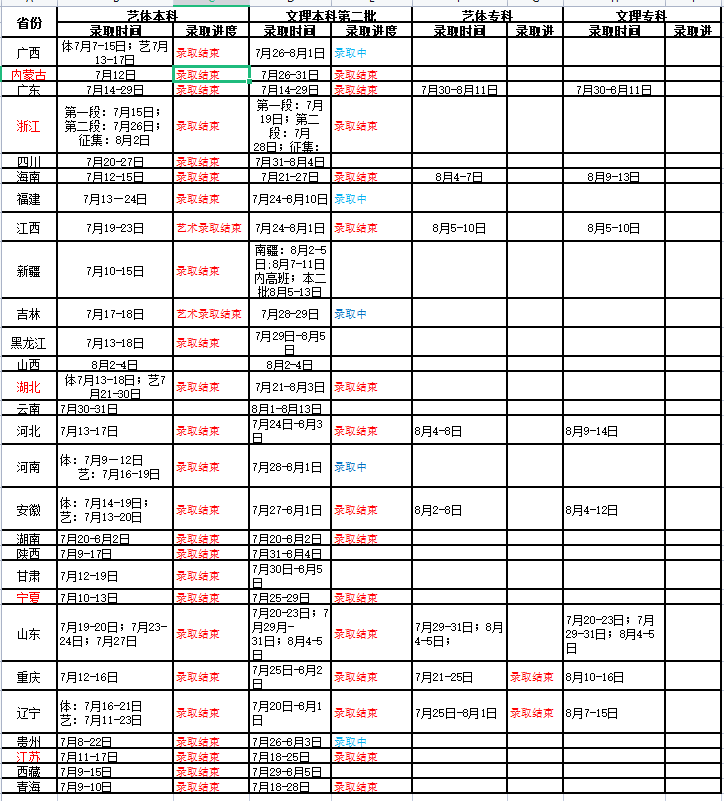 琼台师范学院2022年各省招生录取时间及录取进度表