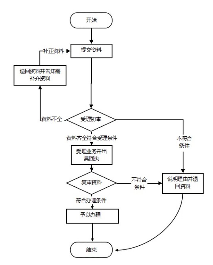 第一步:现场递交资料;第二步:受理初审;第三步:资料齐全符合受理条件,受理业务并出具 回执;第四步:复审资料;第五步:予以办理
