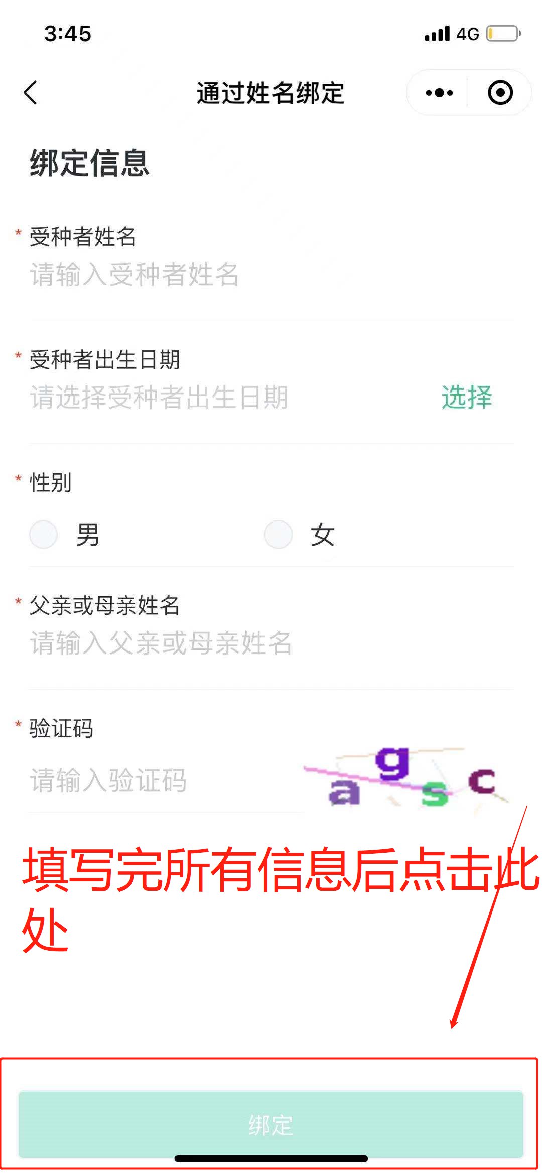 第五步:按要求填写对应信息,点击【绑定】即可建档成功。