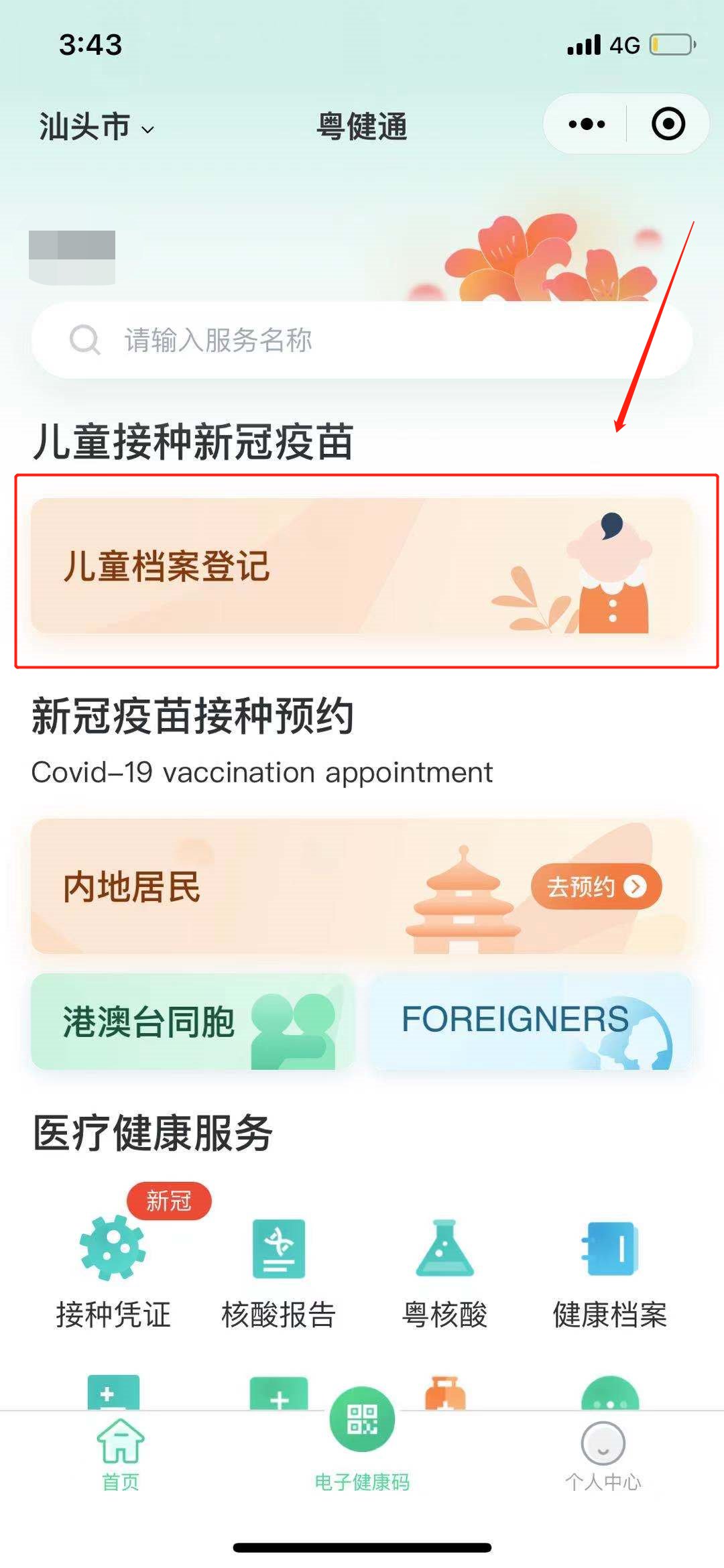 第一步:手机搜索“粤健通”小程序或直接,进入“粤健通”小程序。
