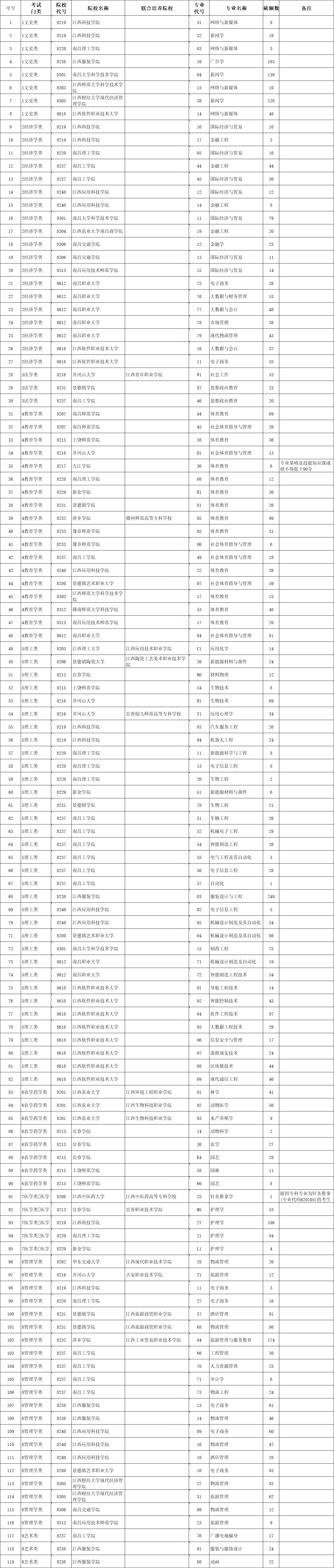 ➤江西省2022年普通高校专升本普通计划批次缺额院校及专业统计表: