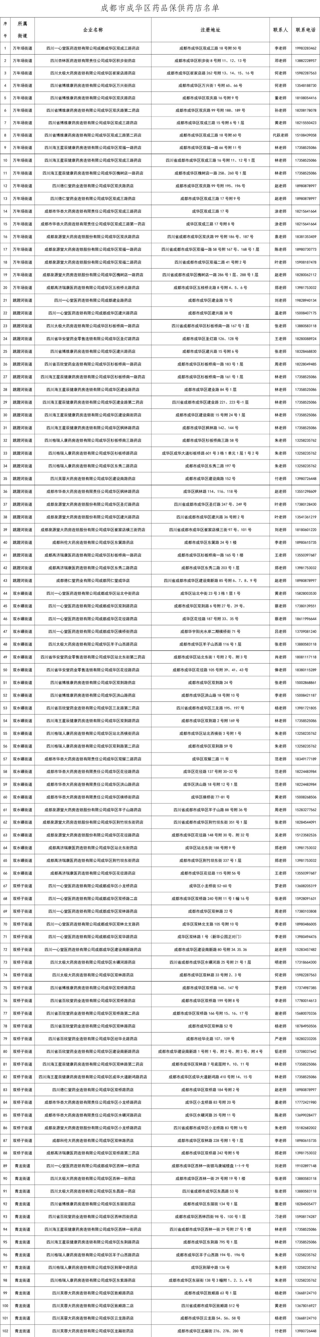 成都成华区药品保供药店名单汇总 成都成华区药监局电话