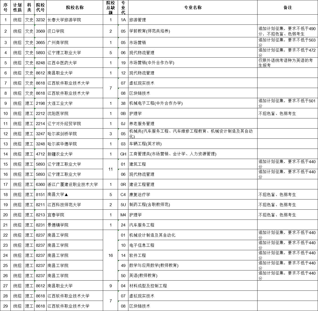 2022江西高考二本第二批缺额计划表(2020江西缺额院校二本)