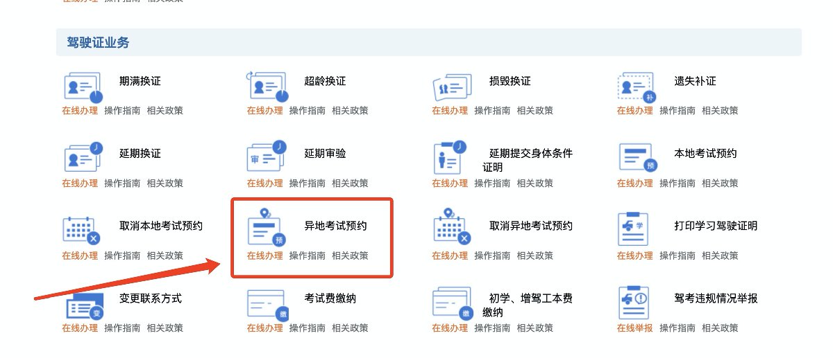 进入后选择异地考试预约,点击【在现办理】在跳转页面输入信息登陆即可开始预约。