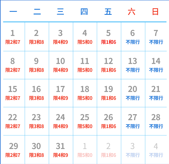 2022年7月4日至10月2日石家庄市限行尾号调整,星期一至星期五限行尾号调整为:2和7、3和8、4和9、5和0、1和6。