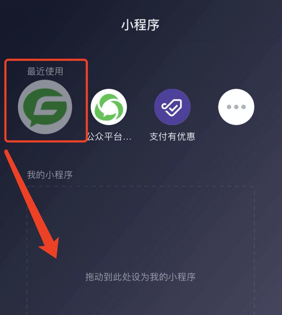 方法一:长按小程序图标,待浮动后直接拖入“我的小程序”框中。