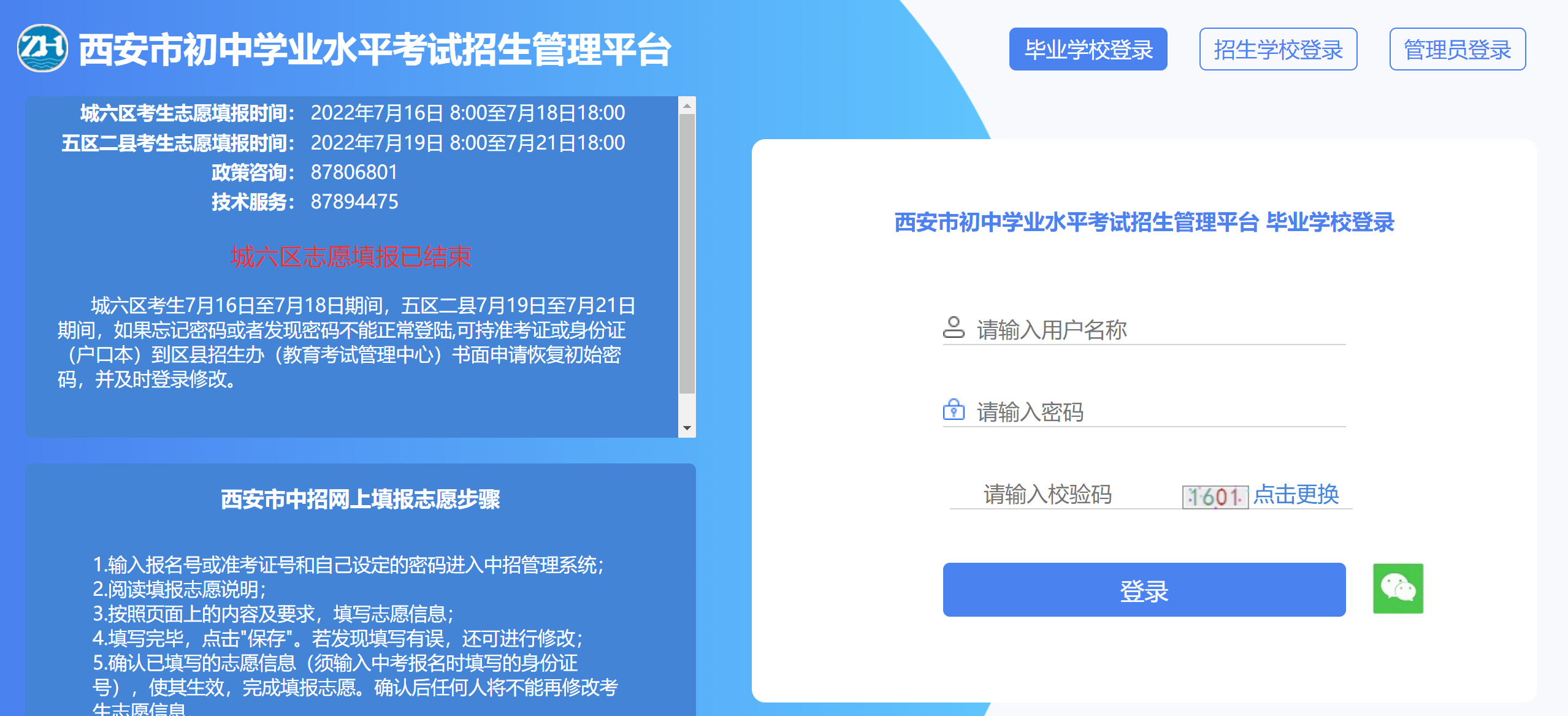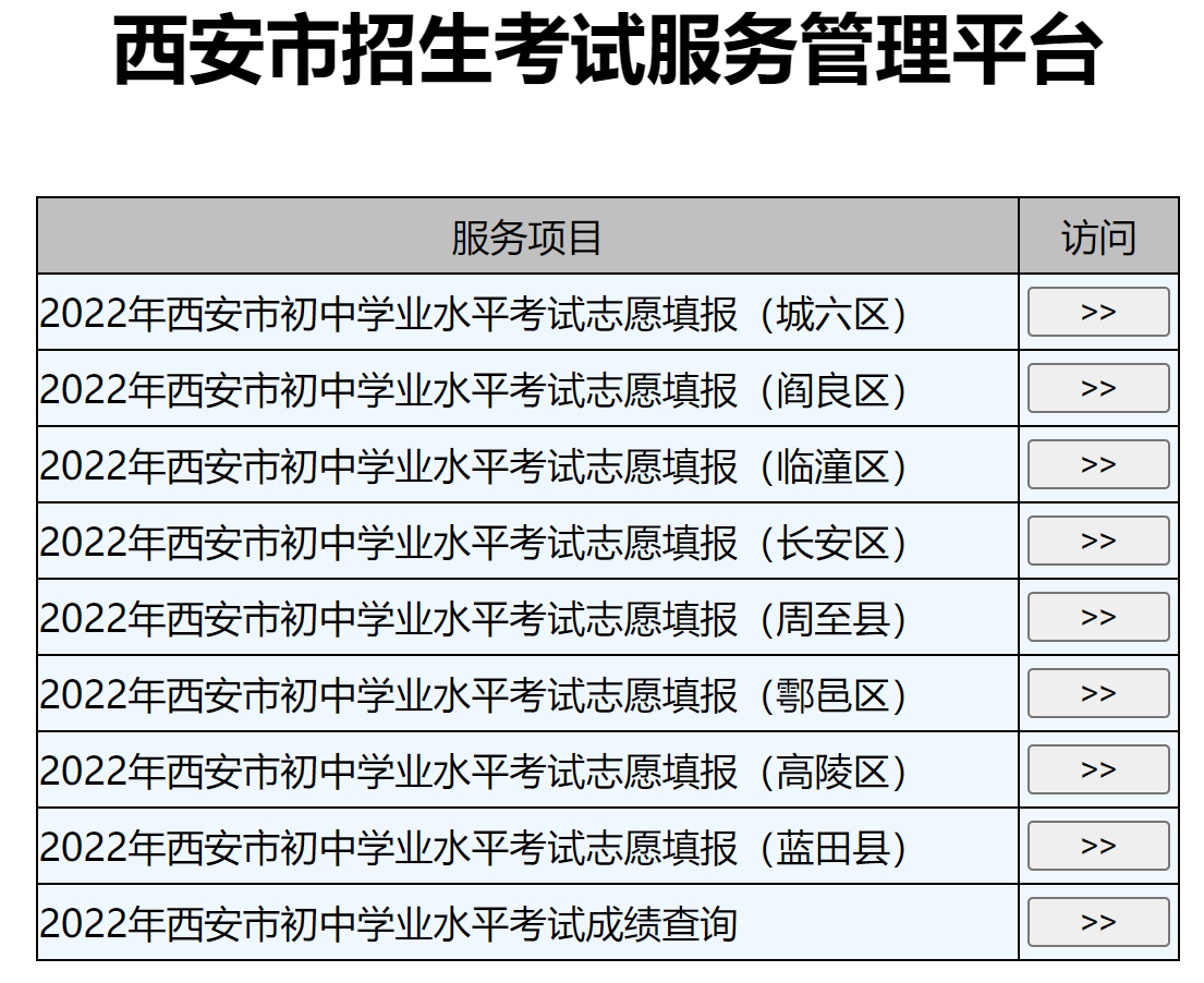 2、点击进入【西安市招生考试服务管理平台】,点击进入【城六区】