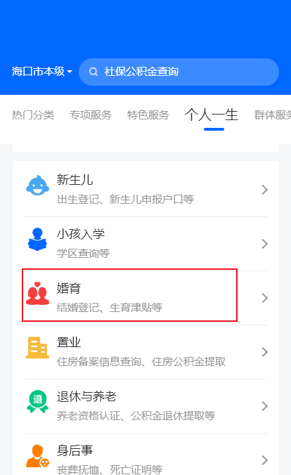 1、关注海口民政微信公众号或者海易办平台,进入预约系统,选择所需的预约服务;