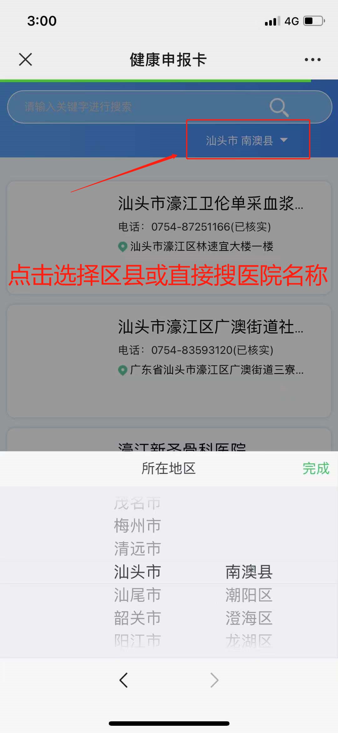 第三步:健康申报卡-请选择或搜索医院,进入“健康申报卡”页面填写相关信息选择相应身份。
