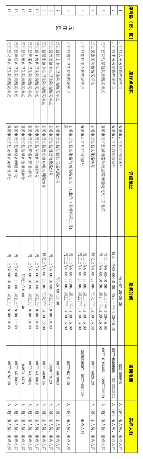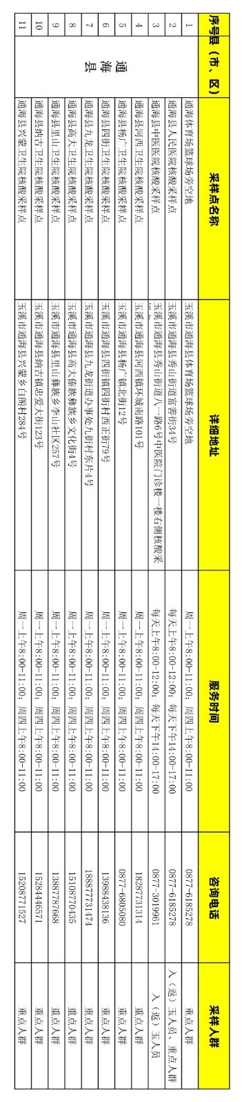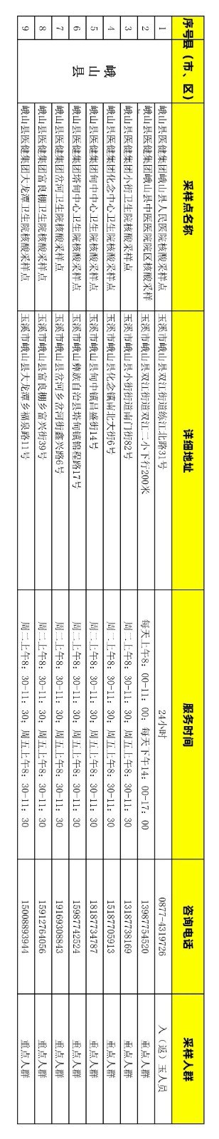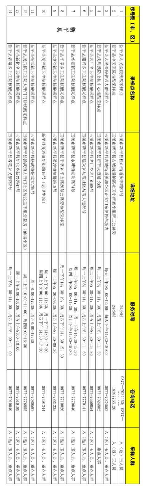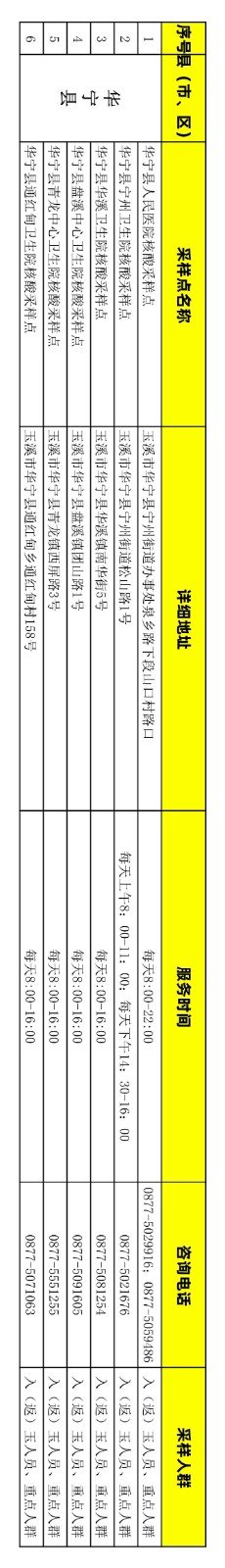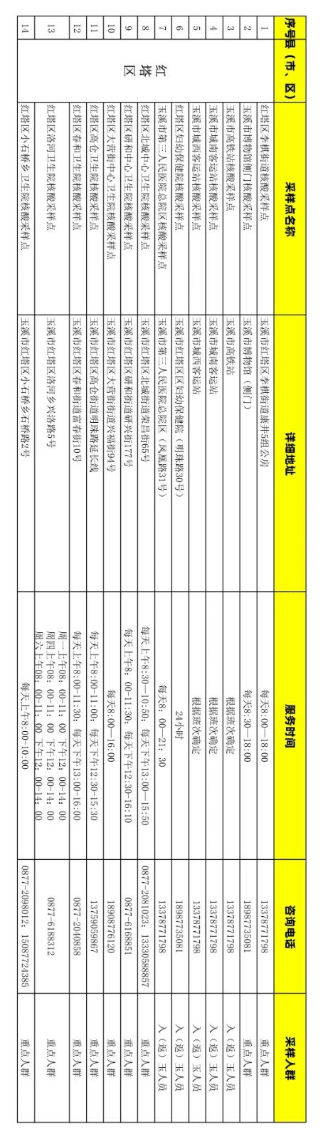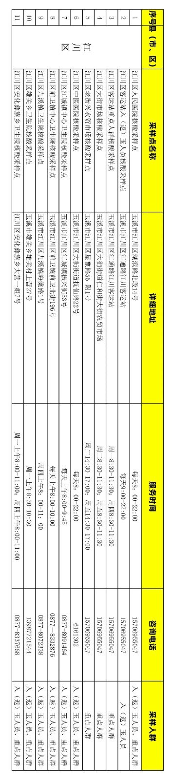 附件:玉溪市免费新冠病毒核酸检测采样点信息