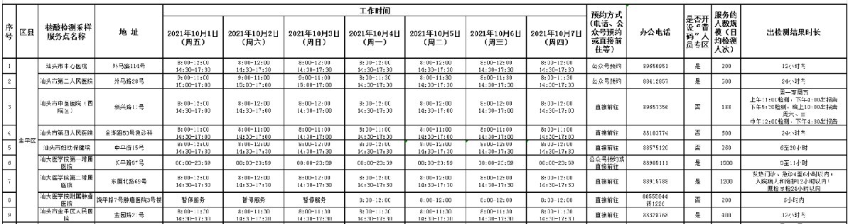 2021汕头国庆金平区核酸检测服务点(汕头市核酸检测时间)