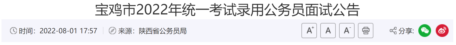 按照《陕西省2022年统一考试录用公务员公告》和全省面试工作安排,现将宝鸡市2022年统一考试录用公务员(含参照公务员法管理单位工作人员,下同)面试有关事项公告如下: