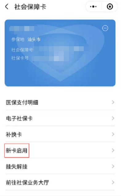 通过“粤省事”小程序或“广东人社”app操作社保卡“新卡启用”。