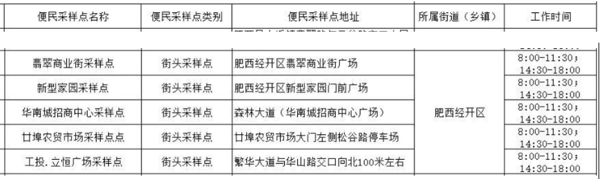 合肥肥西经开区便民核酸检测点分布图(时间+地点)