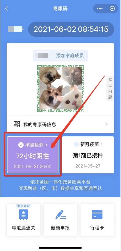 不明白自己的核酸检测是否在72小时内,可以直接看粤省事粤康码上面的显示即可。如用户的核酸检测记录时间在72小时内,将显示紫色背景。