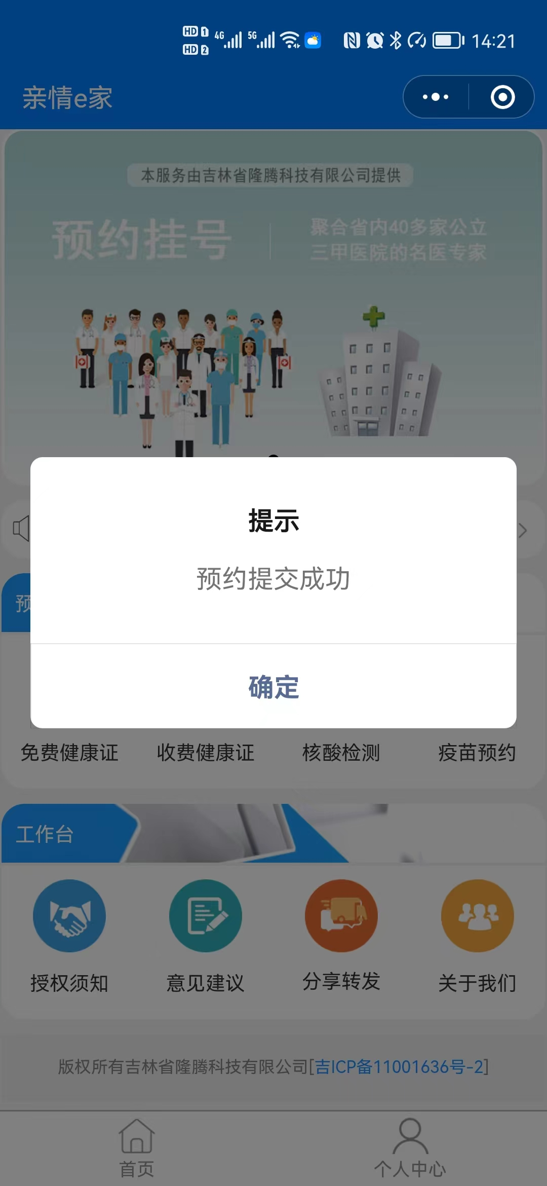 提交成功后,在个人中心“进行中”会有红的标注,证明预约成功