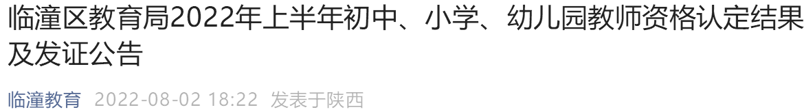 西安临潼区2022上半年教资认定结果及发证公告