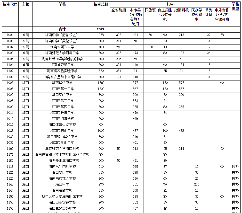 3.三亚一中民族班100人属于指标到校范畴。三亚市普通高中的非本地户籍本地学籍指标特指分配给非本省户籍三亚学籍的招生计划数。文昌实验中学特长生计划用于招收5个体育、艺术专长特色班。