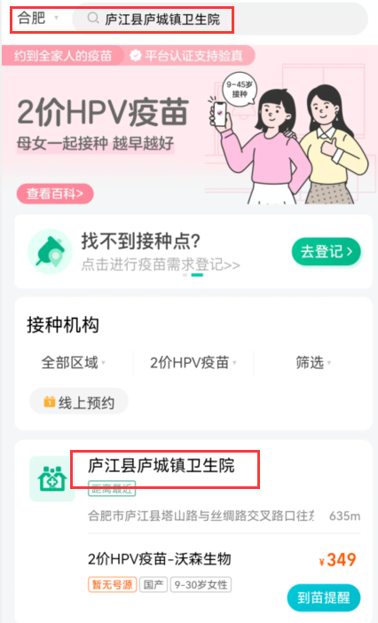 庐江县庐城镇卫生院国产二价HPV疫苗预约(8月3日)