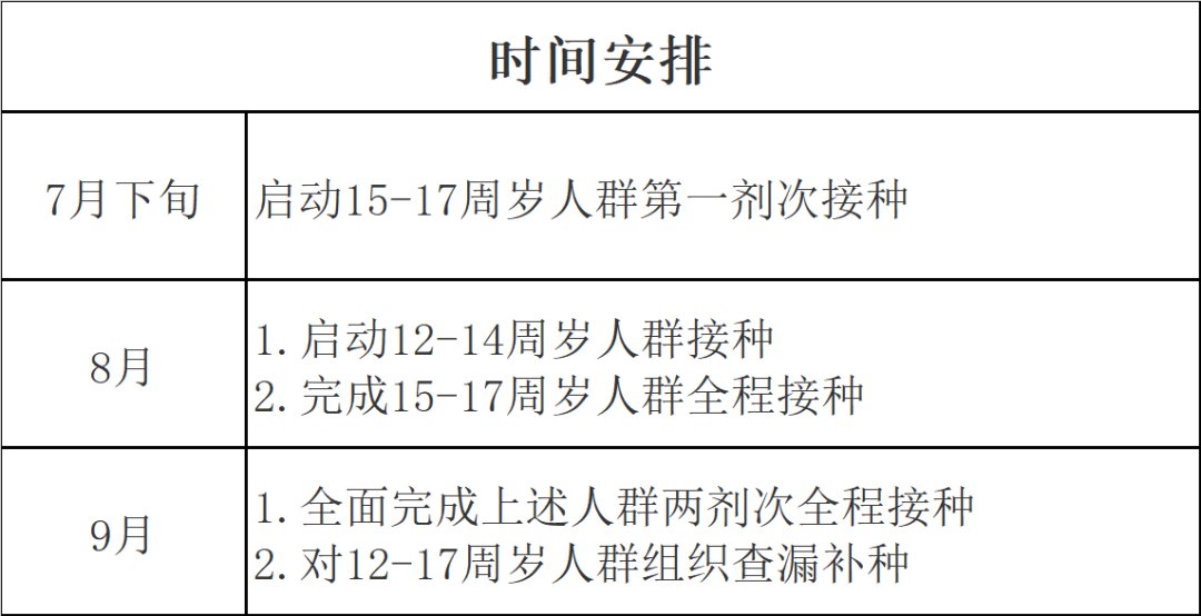 根据国家和省的统一部署,结合近期疫情防控实际需求,为尽快建立有效的免疫屏障,降低新冠肺炎疫情输入和传播风险,我市全面启动12-17岁人群新冠病毒疫苗接种工作,分阶段推进12-17岁无禁忌症人群“应接尽接”。