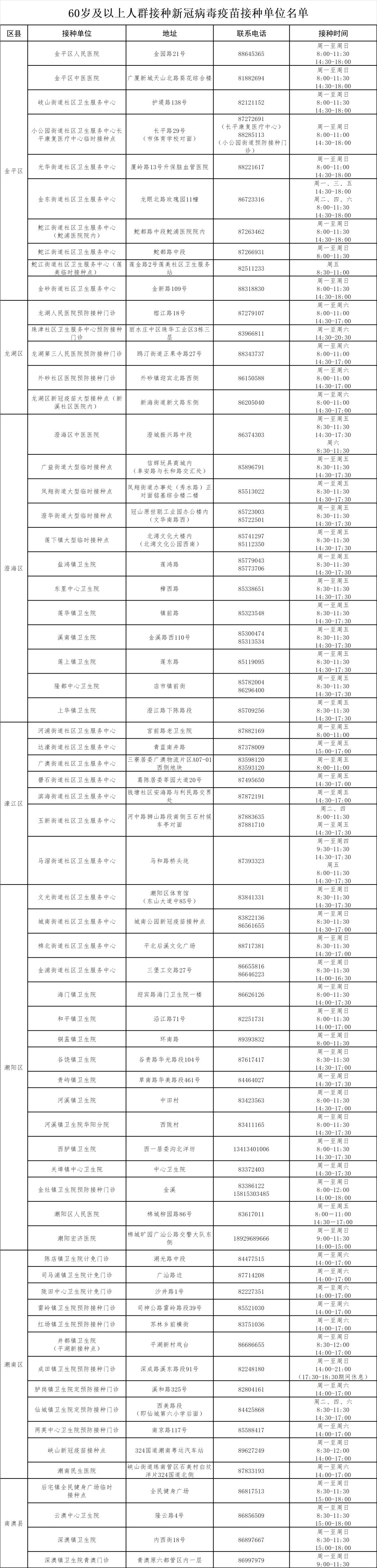 汕头市老年人新冠疫苗接种点一览表 汕头市老年人新冠疫苗接种点一览表查询