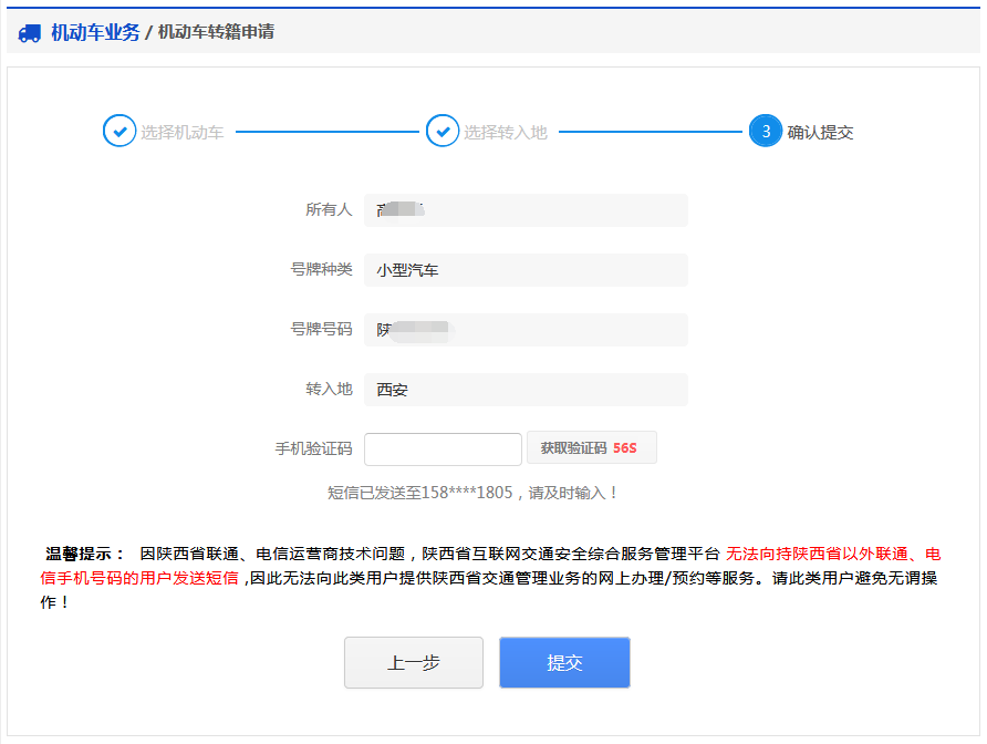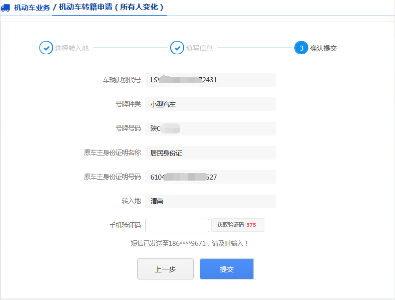 用户填写购买车辆信息及原车主信息后,进入步骤3【确认提交】。