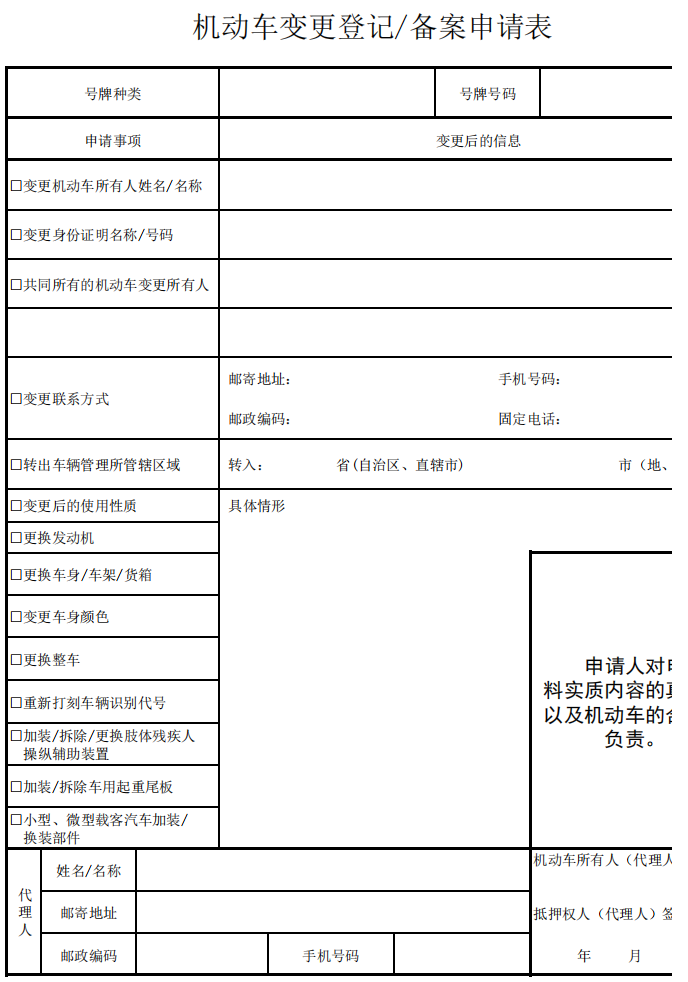 2022天津机动车变更登记申请表 2022天津机动车变更登记申请表图片