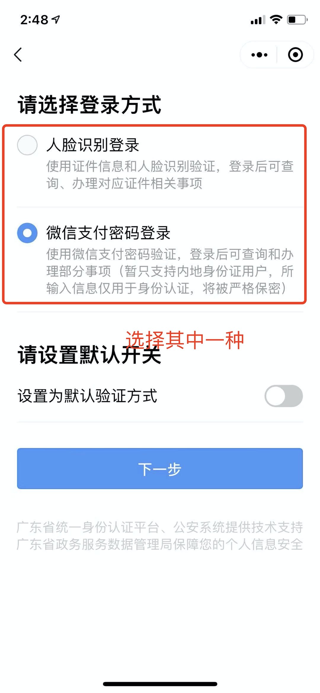 第二步:点击“请登录”,选择登录方式(人脸识别或微信支付密码登录)。